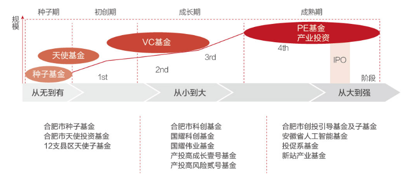 为抢抓国家设立科创板这一重大发展机遇,推动我市优质科创企业借力资本市场做大做强,2019年12月,集团发起设立合肥市科创企业成长基金,总规模5亿元,聚焦成长期科创型企业,与市天使基金、市创投引导基金联动,构建我市覆盖企业全生命周期的股权投资基金体系。