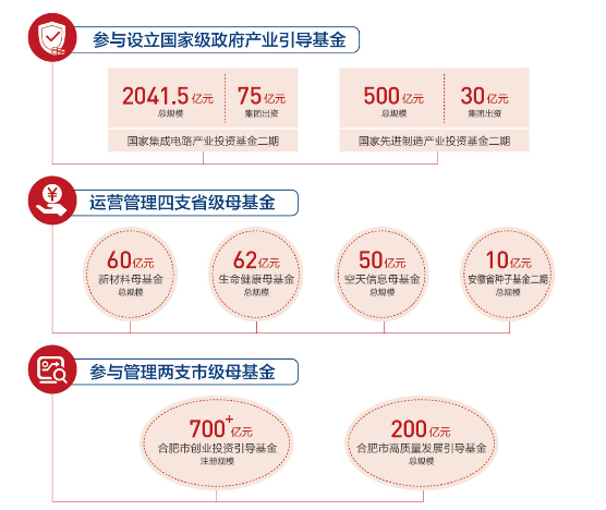 安徽省、合肥市分别向大基金二期承诺出资75亿元,产投集团作为市级层面出资主体,旨在为省内在建大型集成电路产业项目提供战略性支持,促进产业集聚、规模发展,最大程度发挥“基金+产业+基地”联动效用。