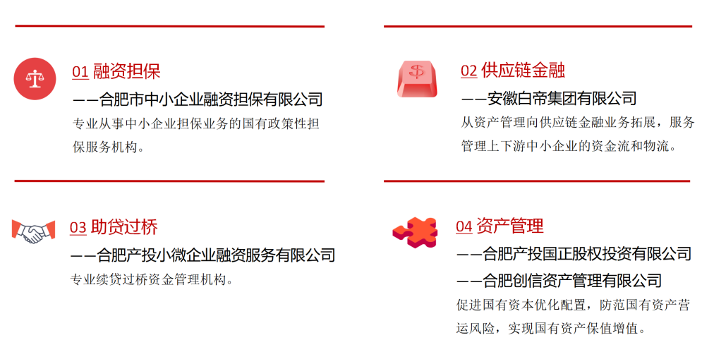 集团秉持“产业为本、金融为用、产融一体化”理念,以支持产业发展、推动项目落地、扶持中小企业为目标,构建多元化、立体化资本平台,全面提升资本运作水平,为产业持续稳定发展提供多维支撑。
