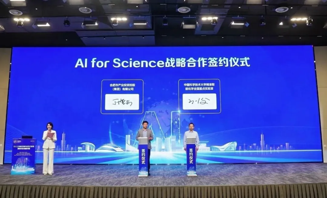 合肥市委常委、副市长袁飞,中国科学技术大学党委常委、副校长傅尧出席会议并致辞。大会在央视总台“科晚”的关注下,现场集中展示五项AI物质创制中心孵化的新物质成果,开展多项生态签约合作,汇聚高校、科研机构、龙头企业等多方力量,助力合肥打造AI4S科创高地。
