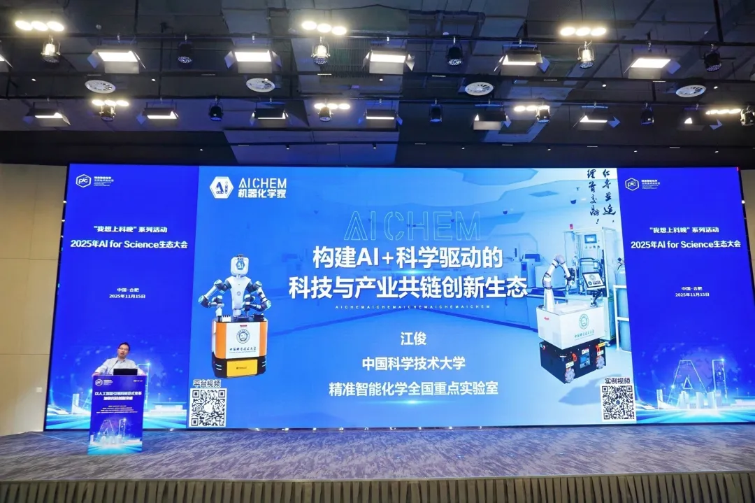 中国科大精准智能化学全国重点实验室副主任江俊教授带来“构建AI+科学驱动的科技与产业共链创新生态”的主旨演讲,深刻阐述了人工智能如何从“科研工具”跃升为“创新引擎”,为合肥打造全球领先的AI4S科创高地提供了清晰的实施路径。