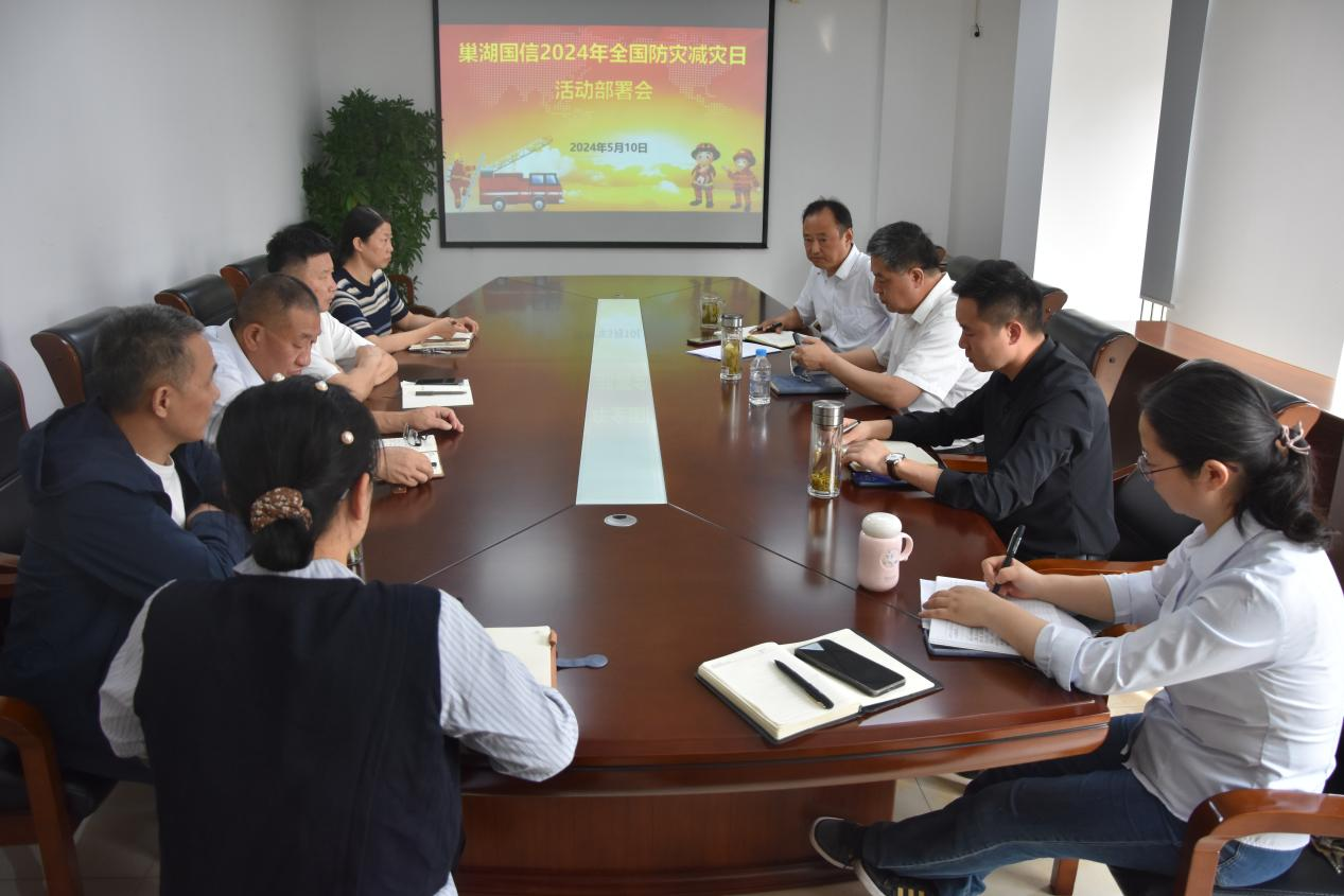 5月10日上午,巢湖国信安委会组织召开全国防灾减灾日活动部署会,传达学习集团《关于开展2024年全国防灾减灾日活动的通知》精神,观看活动宣传图片及警示教育片,以案示警教育广大员工时刻关注安全,提高防灾减灾意识。