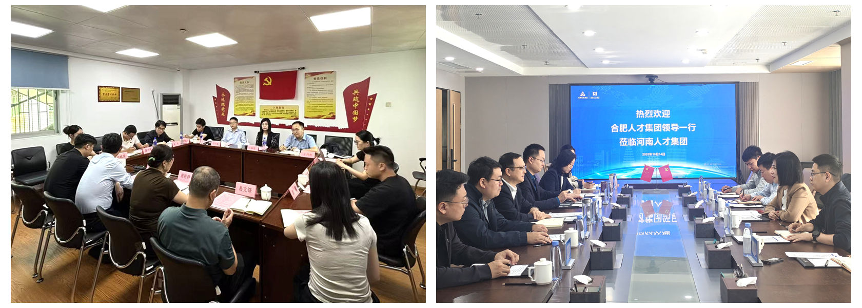在河南人才集团,双方分别系统介绍了各自的发展历程、组织架构特色、核心业务板块布局及下一阶段战略规划,为后续精准对接搭建清晰的“业务画像”。随后,双方聚焦人力资源外包、高端人才猎聘、职业技能培训、招考测评服务、灵活用工服务等核心业务领域,针对当前行业普遍面临的市场竞争压力、企业发展转型、技术赋能业务以及国企在履行人才服务公共职能与提升市场化经营效益间的平衡等痛点、难点问题展开研讨,交流合作思路。