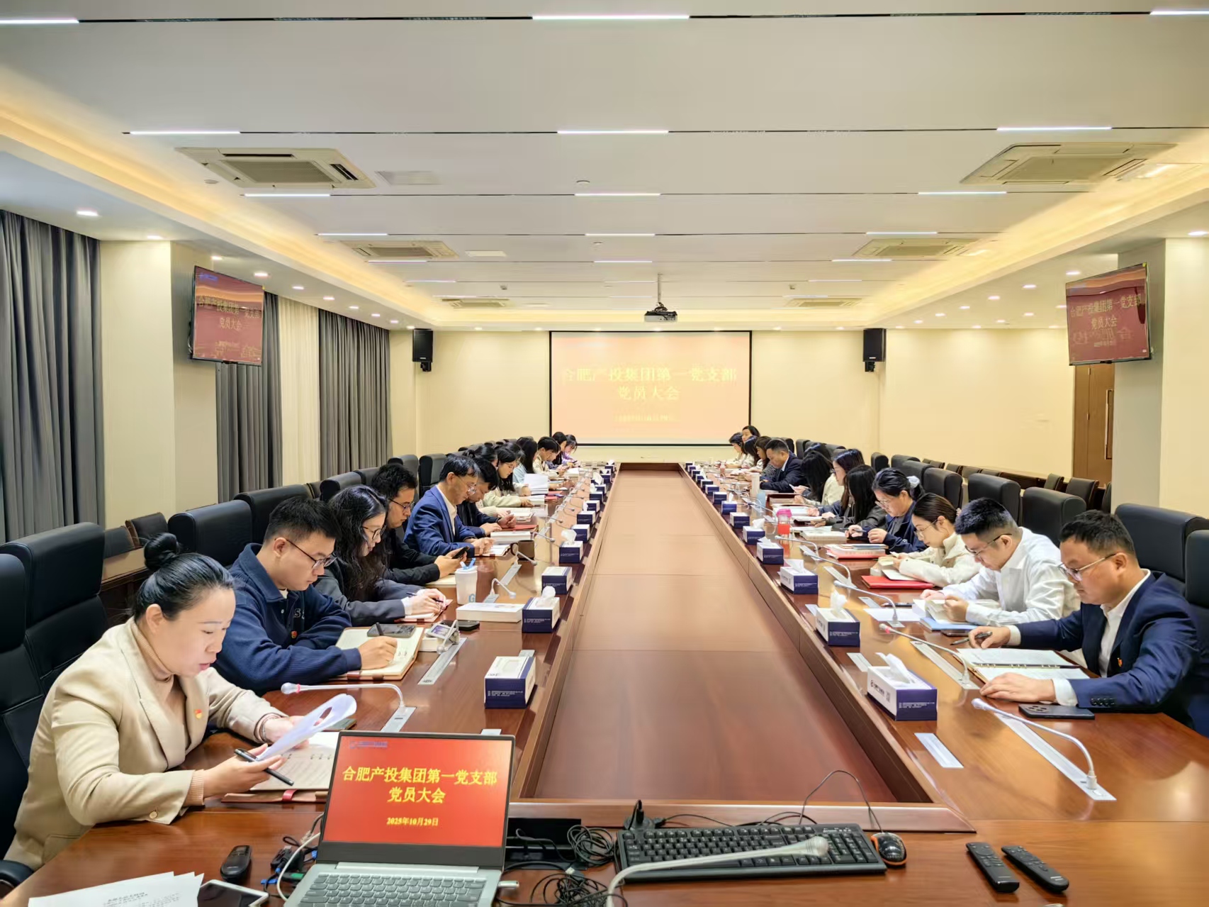 为认真学习贯彻党的二十届四中全会精神,持续推进党的组织生活规范化、制度化,进一步提高党内政治生活质量,10月29日,产投集团第一党支部召开四季度党员大会。会议集中学习了习近平总书记关于网络强国重要思想、《习近平谈治国理政第五卷》及《中国共产党不合格党员组织处置办法》有关内容,传达学习党的二十届四中全会精神及李强总理在主持召开经济形势专家和企业家座谈会上的讲话精神。