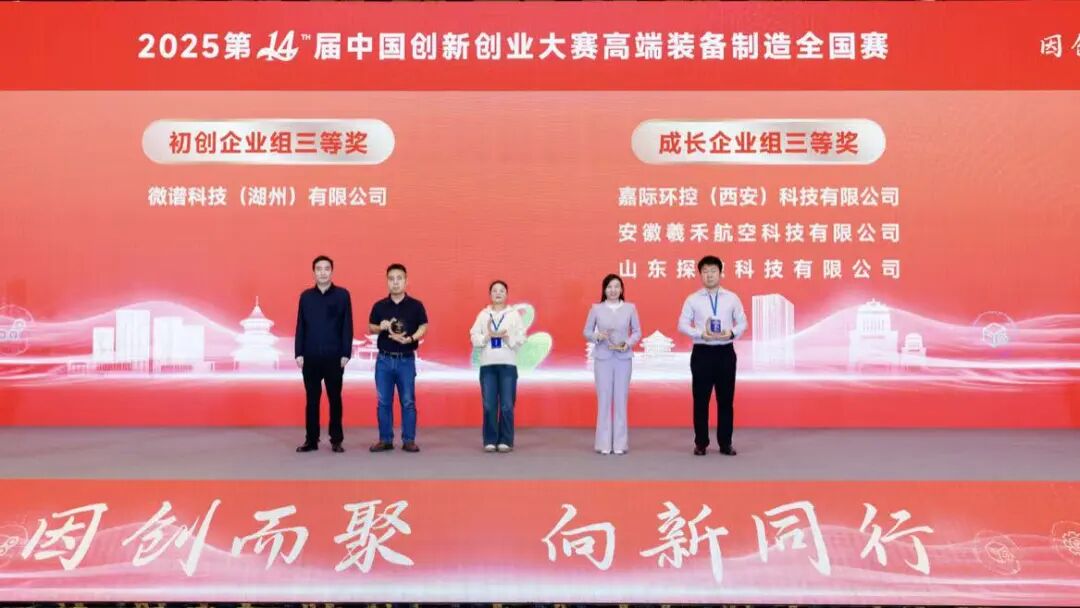 2025年10月22日-24日,第十四届中国创新创业大赛(高端装备制造全国赛)于江苏省扬州市举行。羲禾航空自地市赛、省赛层层选拔而上,以合肥市赛总分第一、安徽省赛总分第二成绩与219家优秀企业会师全国总决赛,并最终以总分第五名获得成长组三等奖,成为本届全国赛中安徽省唯一获奖单位。本届大赛由科技部、财政部、教育部、中央网信办、全国工商联等单位联合指导,规格高、规模大、影响广。现场有中国工程院院士柴天佑、工信部火炬中心副总工程师李文雷、江苏省科技厅二级巡视员万发苗、扬州市人民政府副市长罗雪明等嘉宾见证。